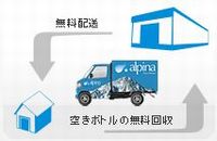 ※配送日前日までに電話・FAX・メールフォームにてご注文ください。 使用済みボトルは弊社にて無料で回収いたします。 お客様のお手を煩わせることなく、エコで便利なサービスです。 ※空ボトルの回収のみのご注文はできません。 ボトル納品時に引取りとなります。 アルピナのご注文、お問い合わせは当社ホームページ ・ フリーダイヤル 0120-498-400 ・ FAX 0250-23-5750 (お電話受付時間:平日午前9時〜午後5時)